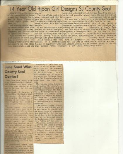 In eighth grade I won the contest to design the county seal. I went on to graduate from Ripon High School in '66.